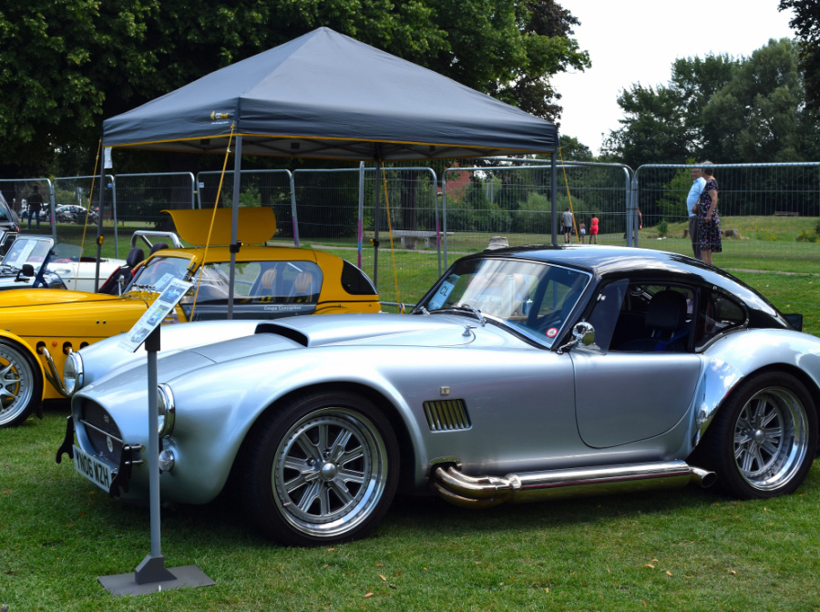 As I entered the showground there was a good number of marshals promptly directing exhibitors, traders and food vendors to their allocated stand for the day. This was very well organised and to be expected from A-ME Events Management as they have many years of large motoring event management experience under their belt. As I pull onto our stand for the day, Neil is already there with his gleaming ‘69 MG Roadster, followed by Derek and Marilyn in their stainless steel bright annealed bodied Robin Hood 7. As I pull into the middle of the stand and take my position, I notice Graham and Elaine pull into the showground in their 5.7 litre V8 Dax Cobra and head straight towards me and pull swiftly alongside.