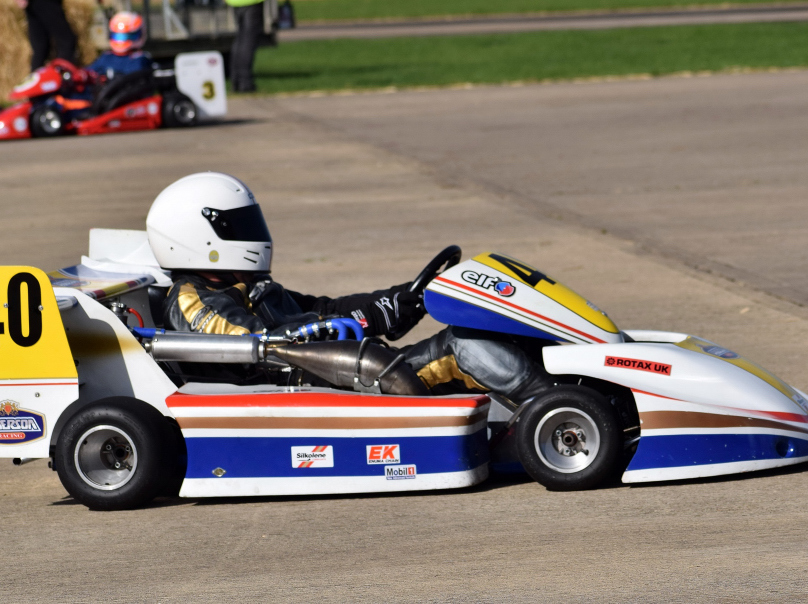 These karts reach top speeds in excess of 165mph with a 0-60 of around 3 seconds. Impressive stuff when you realise that a fifty pence piece stood on its edge on the circuit would touch the bottom of the seat. If you haven’t seen these karts race it makes for exciting spectating with gear changes of less than a second between shifts, full bodywork and 250 race engines that sit just under the drivers armpit.